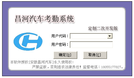软件名称:安徽昌河汽车智能考勤管理系统