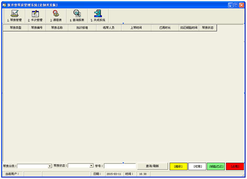 软件名称:合肥幼儿师范学生琴房系统(后台)